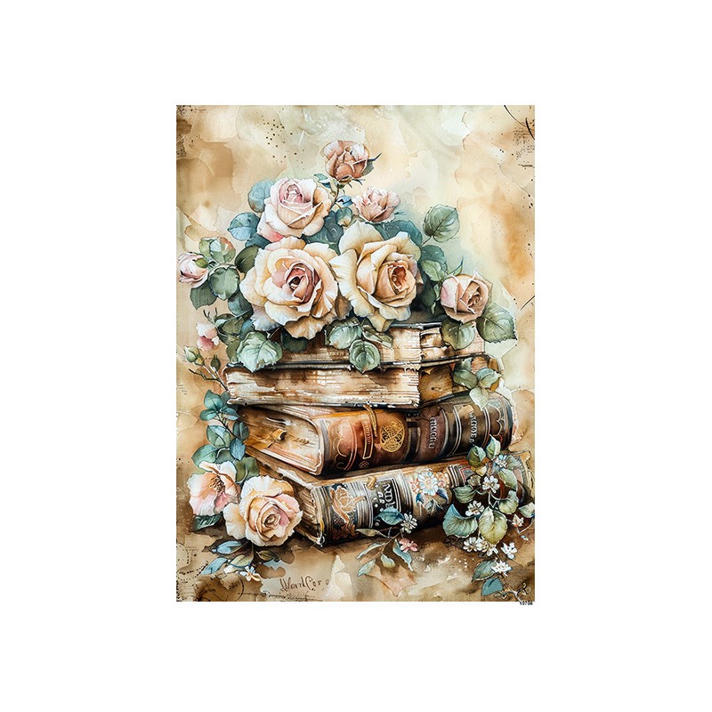 papier ryżowy A-4 10708 ksiązki,kwiaty