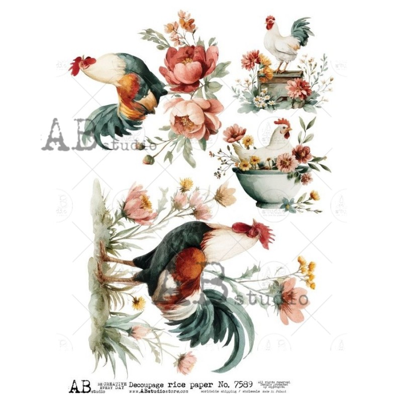 papier ryżowy A-4 id-7589 kolorowe koguty