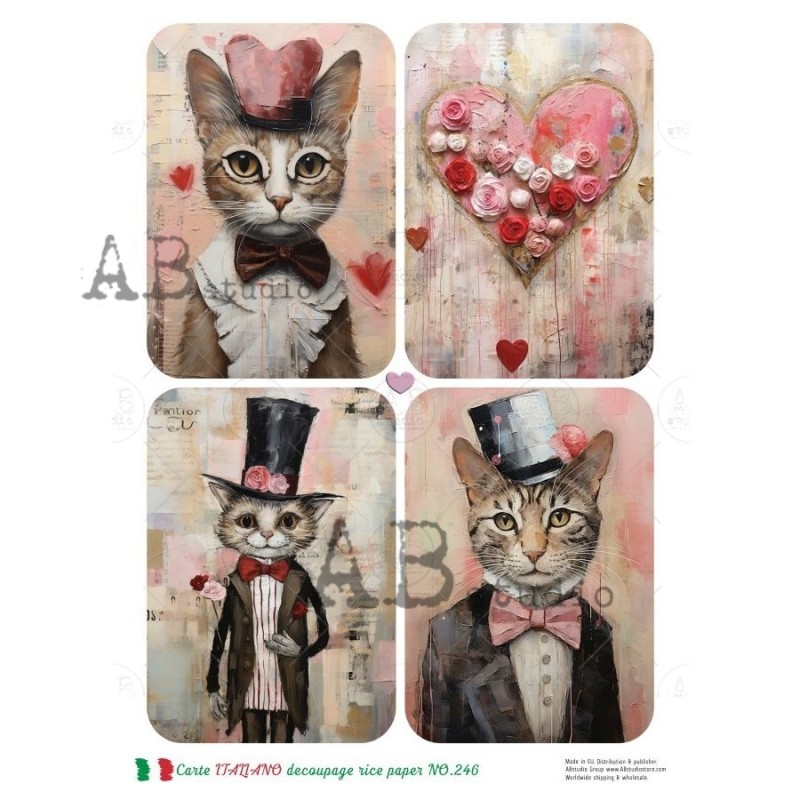 papier ryżowy A-4 no.246 koty ramki,serduszka