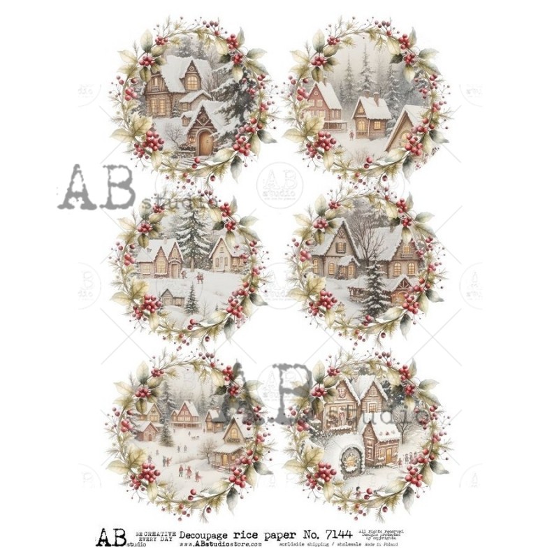 papier ryżowy A-4 id-7144 zimowe domki w wiankach