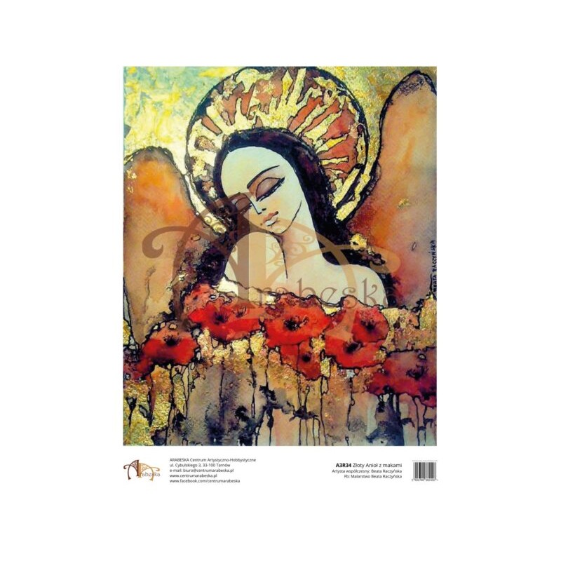 ***papier ryżowy A-3 r34 złty anioł z makami