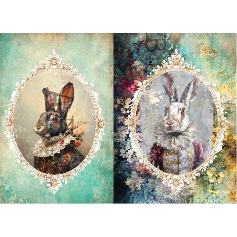 papier ryżowy A-4 no.339 dostojne zające w ramkach