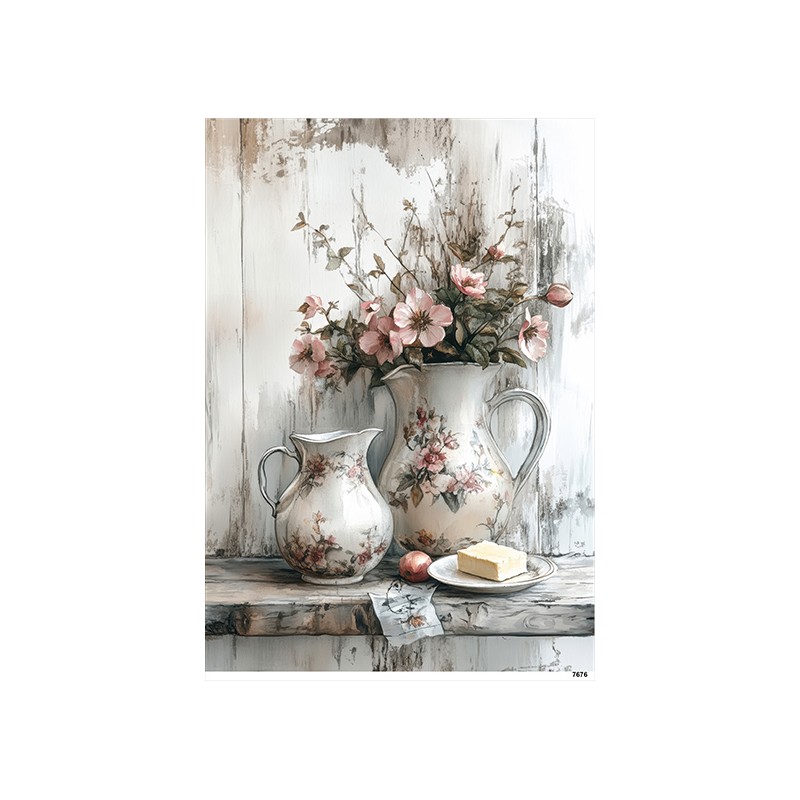 papier ryżowy A-5 7676 dzbanki z kwiatami