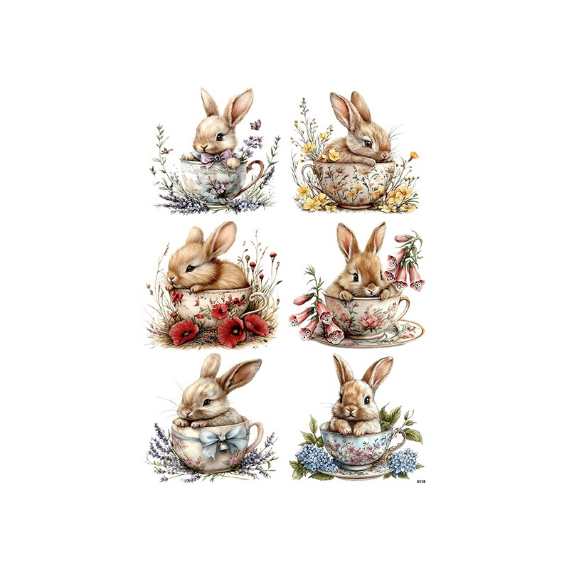 papier ryżowy A-5 4118 zajączki w filiżankach