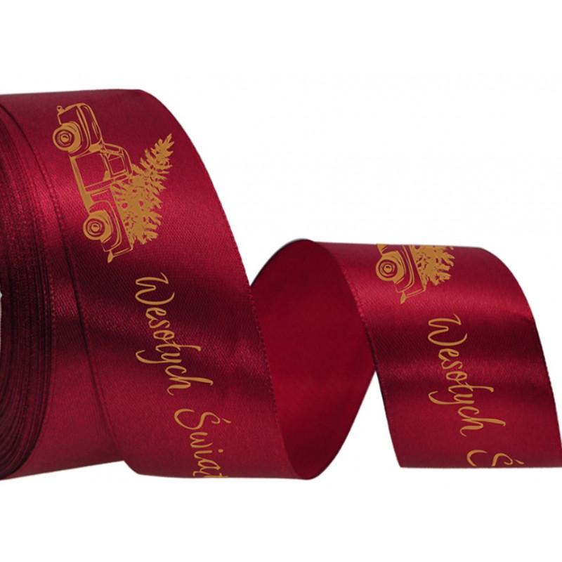 wstążka satynowa 3,8cm*20y bordo wesołych świąt