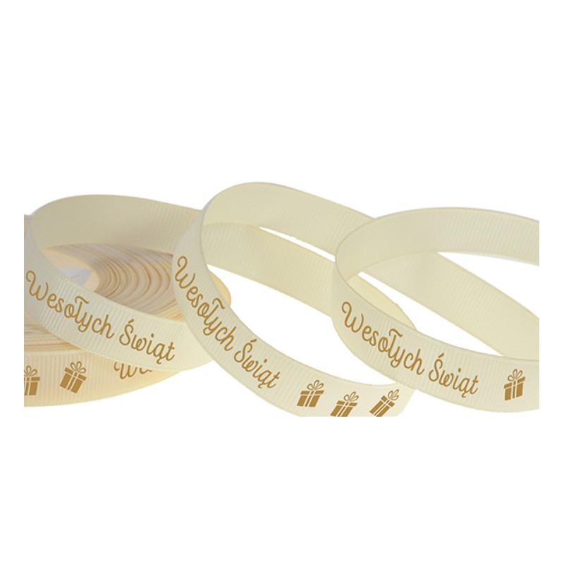 wstążka rypsowa krem 1,2 cm *20y wesołych świąt