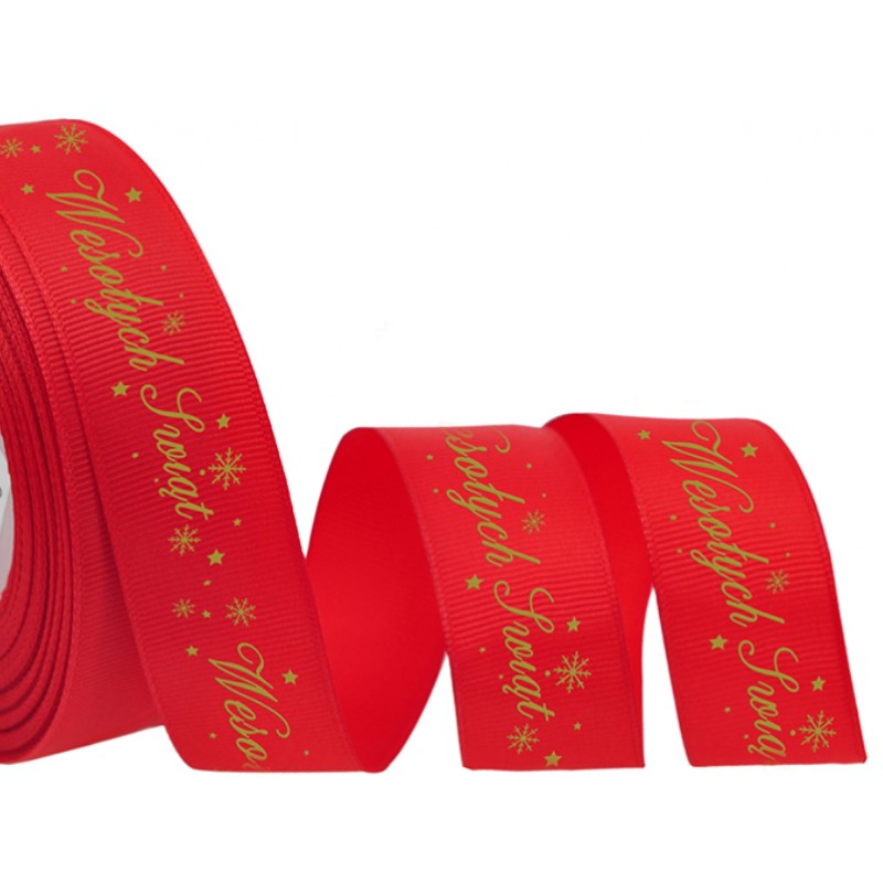 wstążka rypsowa czerwień 2,5 cm *20y wesołych świąt