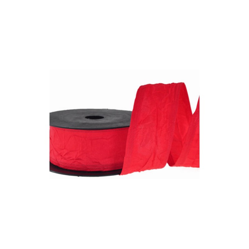 wstążka gnieciona czerwona z drucikiem 4cm/7,5 m
